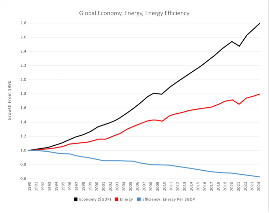 Of course, energy demands can be moderated by conservation and greater efficiency. Choosing to do less—i.e., conserving—is fundamentally a lifestyle choice, but should not be mandated. Meanwhile, efficiency—doing more with less—is helpful so long as the measures are cost-effective, and that proponents understand the associated “paradox.”