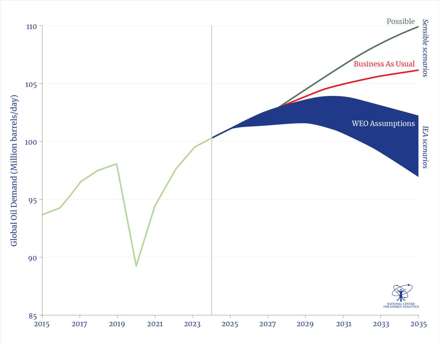 The WEO itself states that it doesn’t forecast but has scenarios—explorations or models of possibilities, and cautions: “Our scenario analysis is designed to inform decision makers as they consider options…. [N]one of the scenarios should be viewed as a forecast.” Scenarios that usefully “inform” need to be based on realistic possibilities and assumptions. But there is one foundational assumption—one that the IEA has for decades included in its scenarios and that has been banished from the WEO: the possibility of business as usual (BAU).