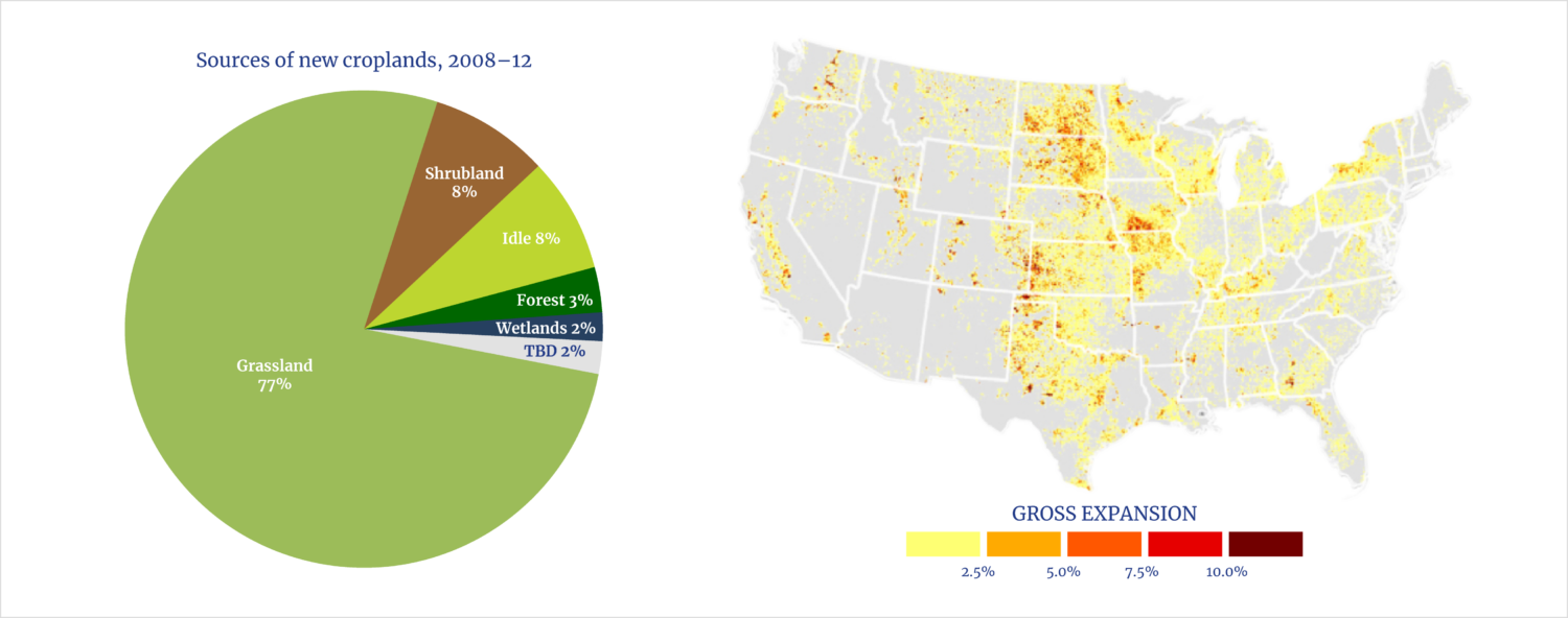 - Converted millions of acres of grassland, wetlands, and fallow Conservation Reserve Program land to intensive cultivation