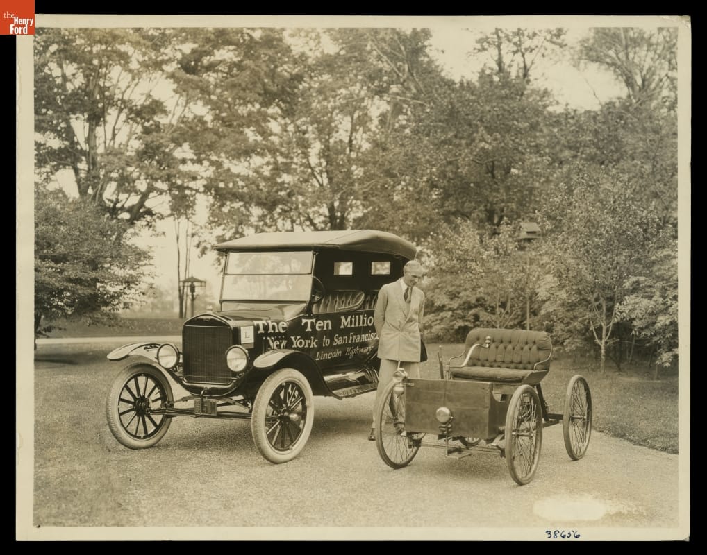 Figure 2. Henry Ford with 10-Millionth Ford Model T and 1896 Quadricycle: 1924