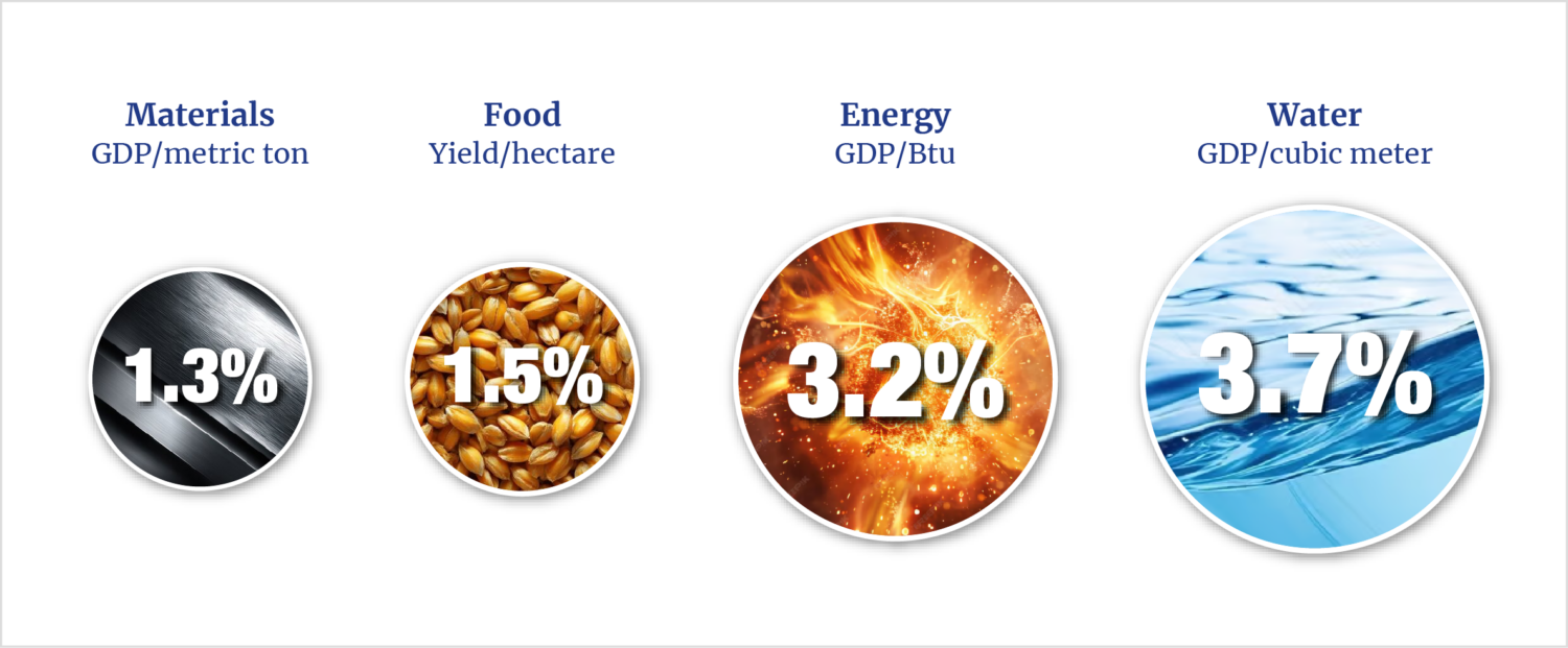 While bioethanol production stagnates, global population continues to climb. The increasing stress on resources is many times greater than the headcount growth, however, as existing billions gain first-time power grid access, increase the meat fraction of their diets, and industrialize. A ranking of the relative resource growth rates needed to keep pace puts water and energy at the top, as shown in figure 5.xv Therefore, decisions about water require consideration of energy impacts, and—likewise—decisions about energy require consideration of water impacts.