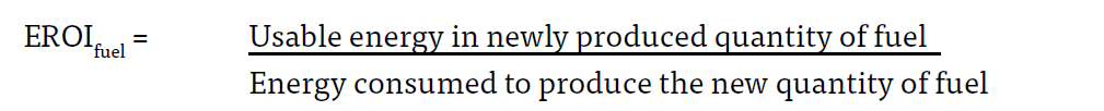 - Other related formulations of energy balance ratios include energy return on energy investment, energy cost of energy, energy intensity ratio, and EROI—the most common formulation in the literature.