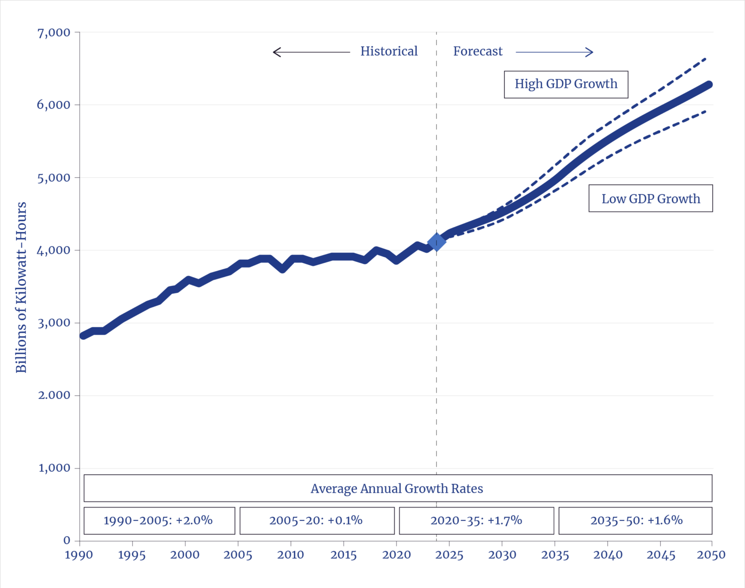 Figure 1: U.S. Electricity Consumption, 1990–2050
