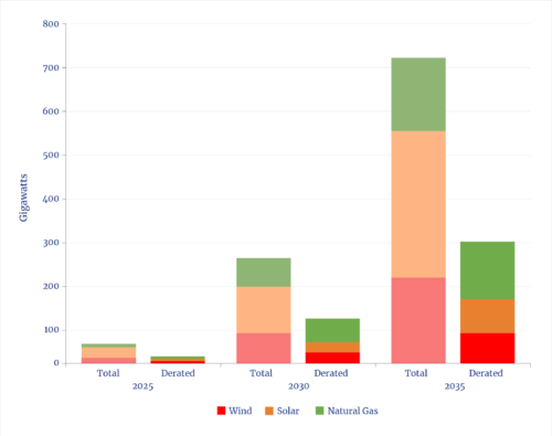 Figure 2. EIA Forecast of Electricity Capacity, Adjusted (Derated) for Production Capability 2025–35