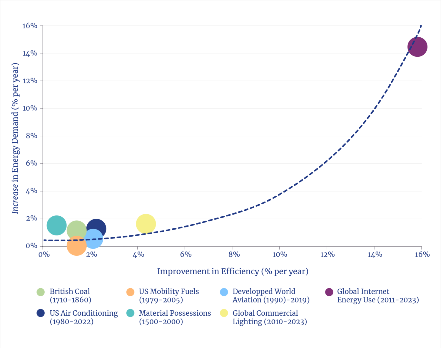 Analogizing the AI build-out with the construction of the U.S. Interstate Highway System does illuminate the energy features of nation-scale infrastructures, but, also unlike AI, the highway system was financed with public funds. The privately financed continental railroad system has also been offered; spending tripled from the 1840s to 1870s, peaking at over 5% of the nation’s GDP.16 However, a comparison with AI would be more analogous to considering the overall spending on the great transportation transformation made possible by the underlying technology of the combustion engine.