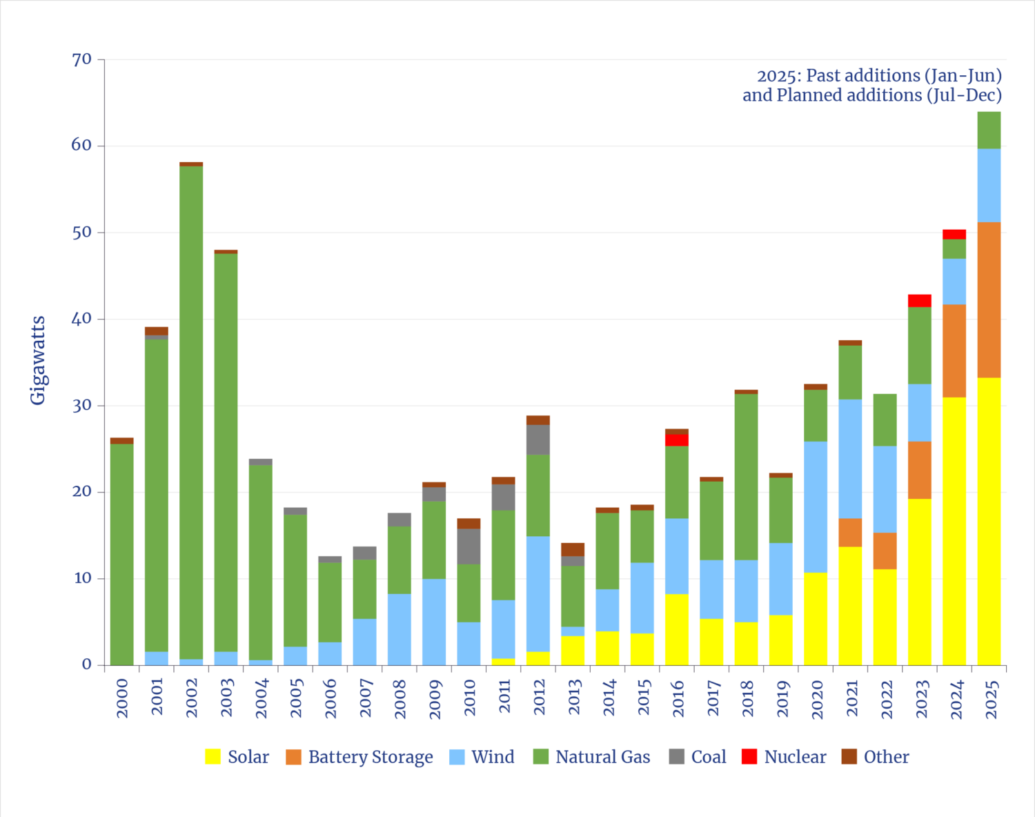 - “U.S. Developers Report Half of New Electric Generating Capacity Will Come From Solar,” EIA, Today in Energy, August 20, 2025.