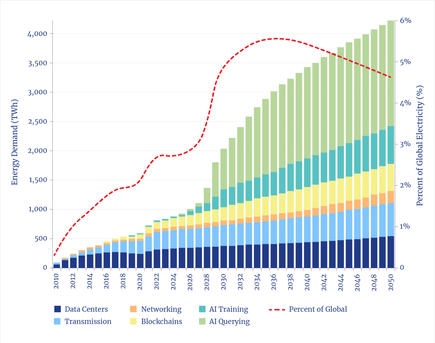 Often ignored in AI forecasts: the additional wealth created by using the new technology leads to behaviors that use more energy. An extra $10 trillion would lead to increased overall energy use equivalent to about five billion barrels more energy over the next decade. Such a wealth-induced increase in energy consumption will be far greater than the quantity of energy needed to power the wealth-creating AI. But unleashing this economic and strategic opportunity requires building, and powering, the AI infrastructure.