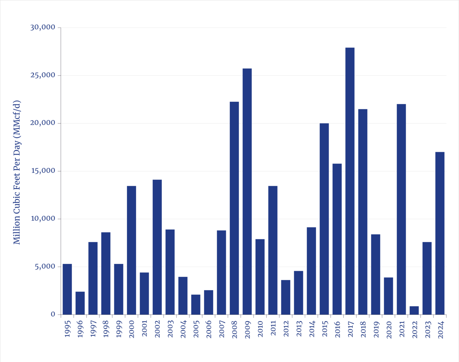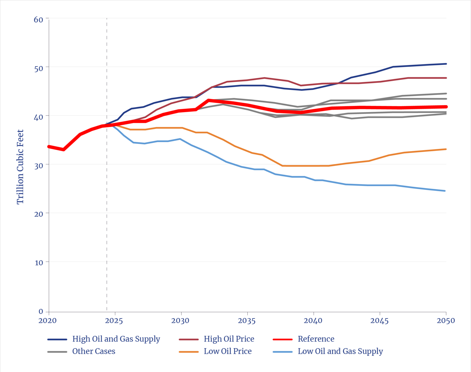 - “The Least U.S. Interstate Natural Gas Pipeline Capacity on Record Added in 2022,” EIA, Today in Energy, March 2, 2023; “Natural Gas Pipeline Project Completions Increase U.S. Takeaway Capacity in 2024,” EIA, Today in Energy, March 17, 2025.