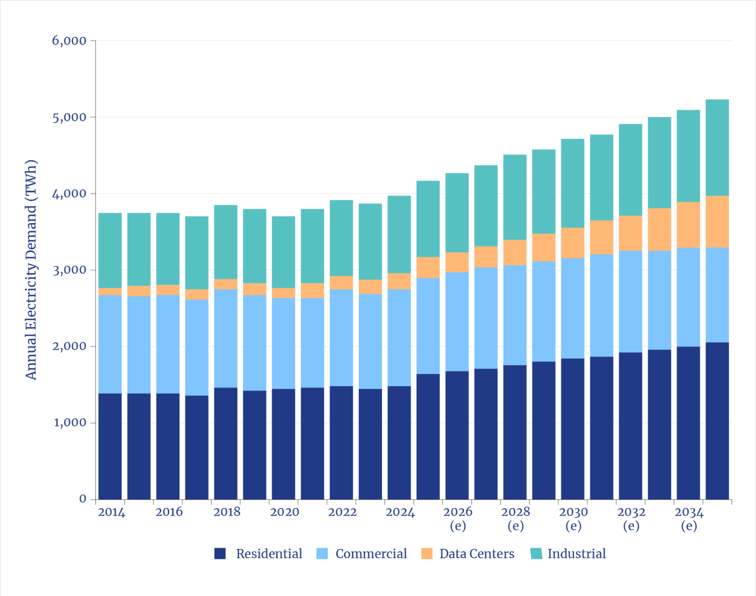 What is unique about AI data centers is the scale and velocity of power demands now emerging. Some individual data centers now under construction will have city-scale power demands, and hundreds are being built or planned. The rate of construction—especially in combination with reshoring manufacturing and reanimating basic domestic industries—has ended the two-decade interregnum of flat electric sector growth.